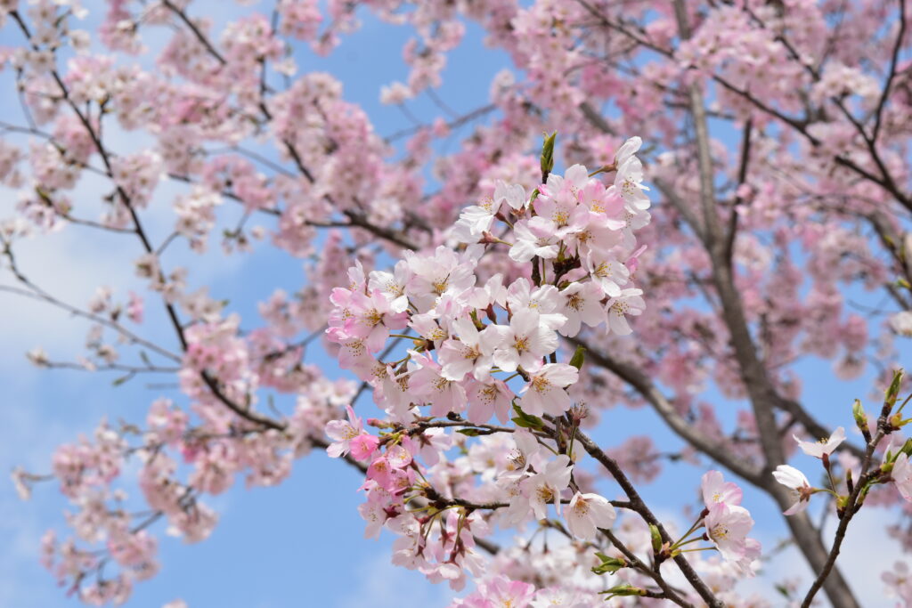 ソメイヨシノ 最も一般的で、全国各地で見ることができる。花は淡いピンク色で、開花時期は通常3月下旬から4月上旬。