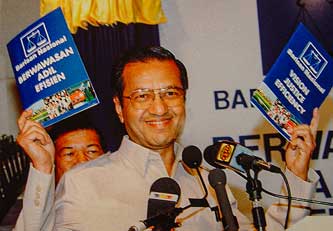 | 2008年 | マレーシア下院議員選挙で野党連合が過半数を獲得。マハティール元首相が勝利宣言。建国以来初の政権交代となった。自身もケダ州から立候補し当選、下院議員復帰を果たした。 この年、国王ムハンマド5世から新政権の首相に任命され、15年ぶりに政府首班の地位に返り咲いた。年齢90代の人物が選挙で勝利し国家指導者に就任した例は世界でもほとんどない。 |